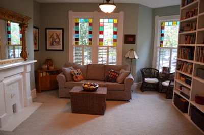 Bonus 1st Floor Den / Library / Office space with built-in bookshelves and exposed brick